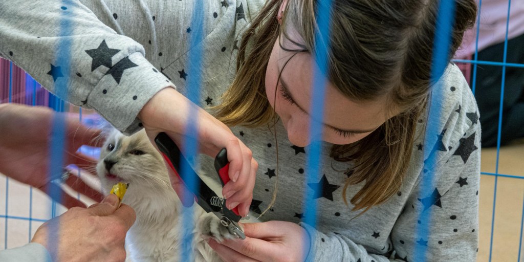 Resources: Checklists A Kitten Kindergarten student learns how to clip her kitten’s claws. Basic Care Kitten 101 New Cats New Cats & Shy Cats Senior Cats Healthy Environment Cat Communication Cats and Carriers Enrichment Summer Fun Winter Fun Training How to Take a Cat for a Walk Teach a Cat to Sit and Come Teach a Cat to Up and Stay Behavior Aggression Introductions Babies Toddlers Children Dogs LitterBox Medical Environment Multi-Species Scratching Share this: Click to share on X (Opens in new window) X Click to share on Facebook (Opens in new window) Facebook Like Loading...